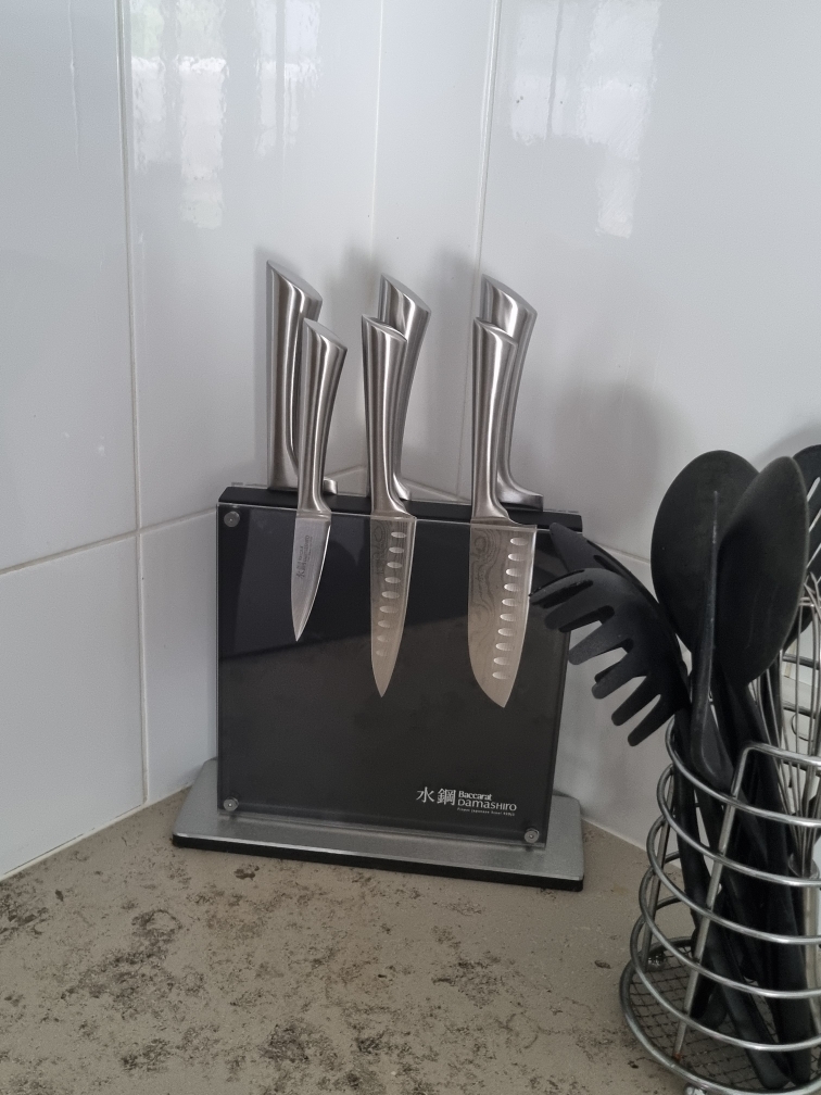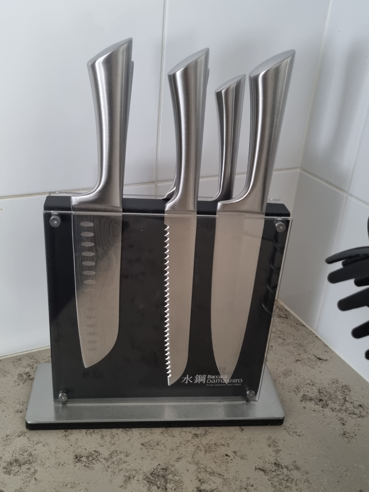 The Baccarat Damashiro Kin 7 Piece Knife Block Set delivers professional-grade cutting performance with premium Japanese steel construction. Built with Rockwell 53 hardness, Damascus-inspired blade design, and precision tapered edges, this complete knife collection provides exceptional sharpness, superior edge retention, and versatile cutting capability for home cooks who demand authentic Japanese craftsmanship and lasting quality.