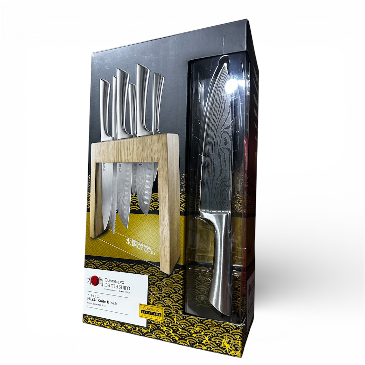 Cuisine pro Damashiro Mizu 7 Piece Oak Knife Block – Premium Japanese Steel Kitchen Knife Collection